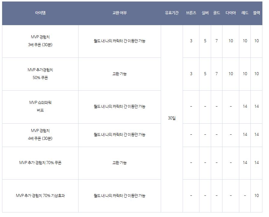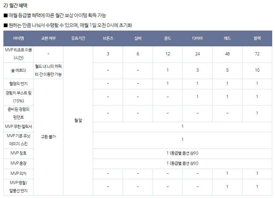MVP작 혜택 정리